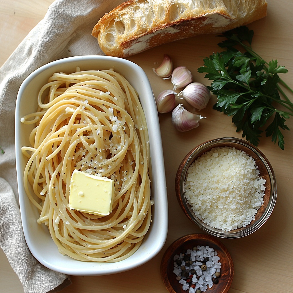 The beauty of this Spaghetti with Garlic Bread Recipe lies in its simplicity. Each ingredient plays a vital role, from the tender pasta providing body and bite, to the garlic butter that infuses an unforgettable aroma. Fresh bread adds texture and comfort, while a touch of parsley and Parmesan invite freshness and richness. Here’s everything you’ll want on hand:
