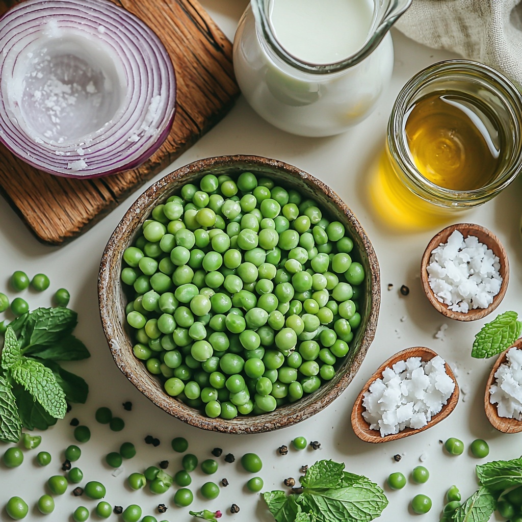 Gathering these straightforward, fresh ingredients is the first step to making this soup sing. Each element plays a crucial role, whether it’s the sweetness of the peas, the brightness of the mint, or the creaminess brought by your choice of dairy or coconut milk.