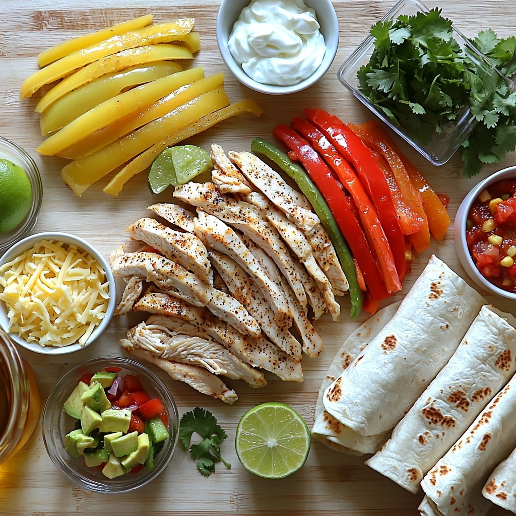 When it comes to garnishes, think freshness and creaminess to complement the warm, smoky fajitas. A sprinkle of shredded Monterey Jack cheese melts wonderfully on the hot chicken and veggies. A dollop of sour cream adds cool richness, while fresh salsa provides a bright, zesty kick. Don’t forget diced avocado for creamy contrast, and serve lime wedges on the side for anyone wanting an extra burst of citrus magic.