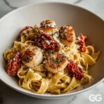 Finish by plating the pasta and sprinkling freshly chopped basil or parsley over the top for a vibrant herbal lift. Serve immediately to enjoy the freshest flavors and the perfect balance of creamy, tangy, and seafood sweetness.