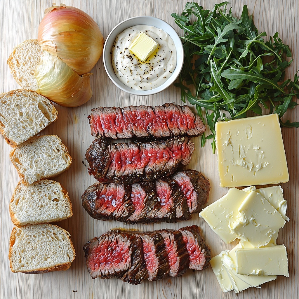 Don’t let the ingredient list fool you—each element is straightforward but essential to building layers of flavor and creating a sandwich you’ll want to make again and again. From the aromatic rosemary seasoning on the steak to the luscious aioli and the sweetness of caramelized onions, these ingredients work in harmony to create something extraordinary.