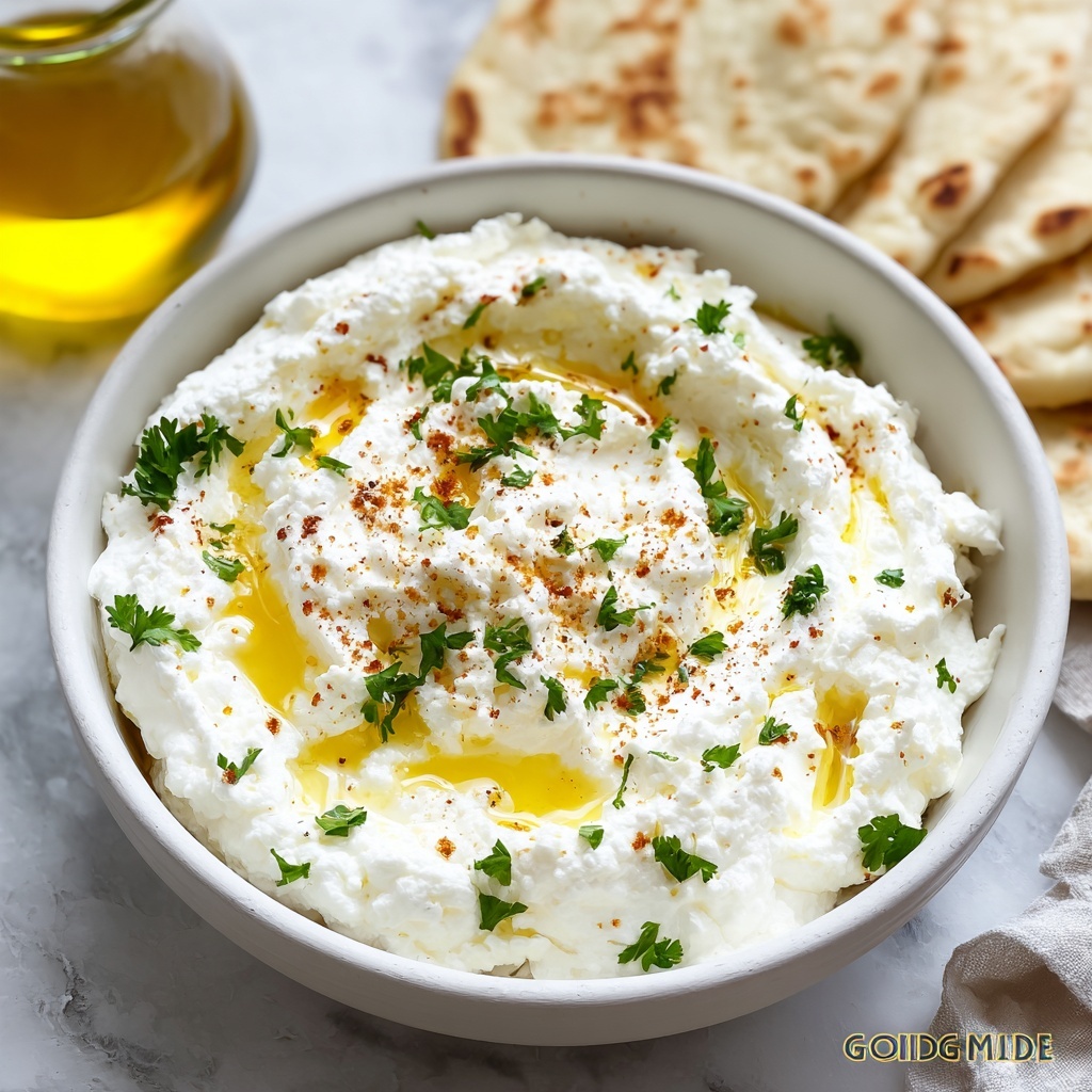 For a party, serve your Whipped Feta Dip Recipe in a hollowed-out bread bowl for an impressive centerpiece. You can also create a layered dip by spreading roasted red peppers or sun-dried tomatoes underneath, or drizzle some chili oil on top for a hint of heat and color contrast.