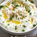 - Transfer and Garnish: Spoon the whipped feta dip into a serving dish. Garnish with freshly chopped parsley or dill and drizzle a little olive oil on top for added flavor and presentation.