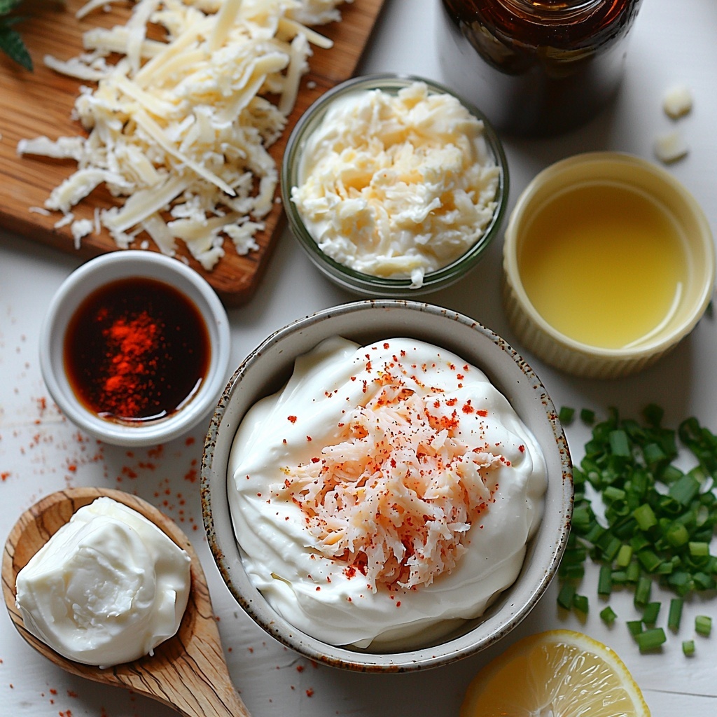 Creating this Winter Wonderland Hot Crab Dip Recipe is delightfully straightforward, thanks to a handful of simple ingredients that each play a crucial role. From the creamy base to the fresh crab and vibrant green onions, each component perfectly balances taste, texture, and color, resulting in a dip that’s as beautiful as it is delicious.