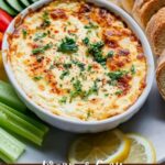 This dip pairs beautifully with an array of dippers like rustic toasted baguette slices, crispy pita chips, or even fresh vegetable sticks such as celery and cucumber for a lighter crunch. You can also serve with a charcuterie board for a festive and varied snack spread.