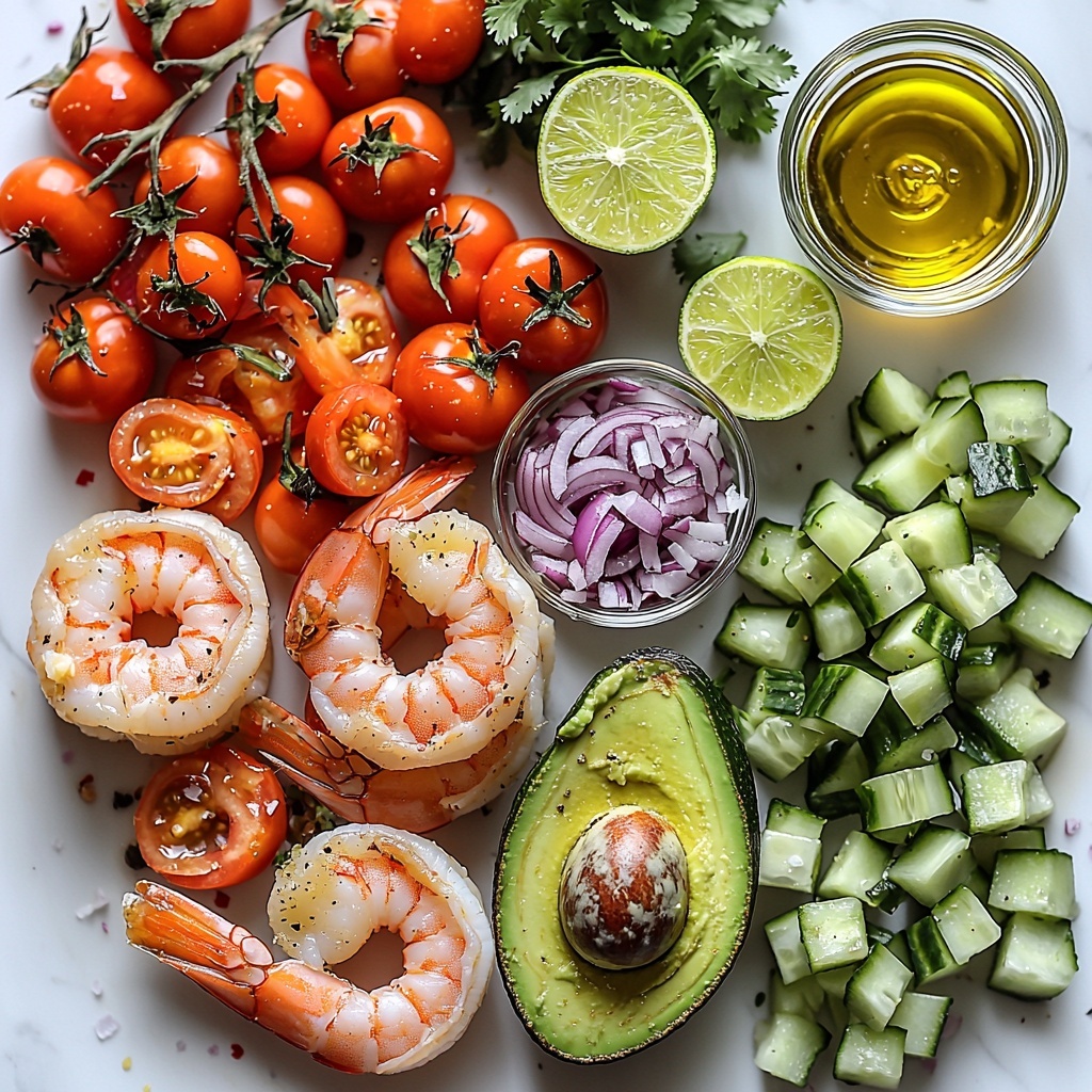 Simple, fresh ingredients are the heart and soul of this salad. Each one plays a crucial role in delivering layers of flavor, texture, and color that make this dish truly irresistible. From creamy avocados to succulent shrimp and a lively citrus dressing, everything comes together beautifully.